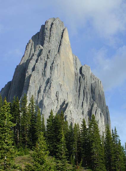 Rockies with Chris Kulp In late June of 2001, Chris Kulp and I spent 10 days climbing in the Canadian Rockies. As is not so uncommon in the Rockies we were chased around by the weather, trying to make the best of the ever changing mix of sun, cloud rain and snow. Here are is one of the climbs we enjoyed. Mount Louis is one of Conrad Kain's great routes. In 1916 he climbed this outrageous looking peak with A.H. MacCarthy in a time that is still fast for today's high-tech climbers. |