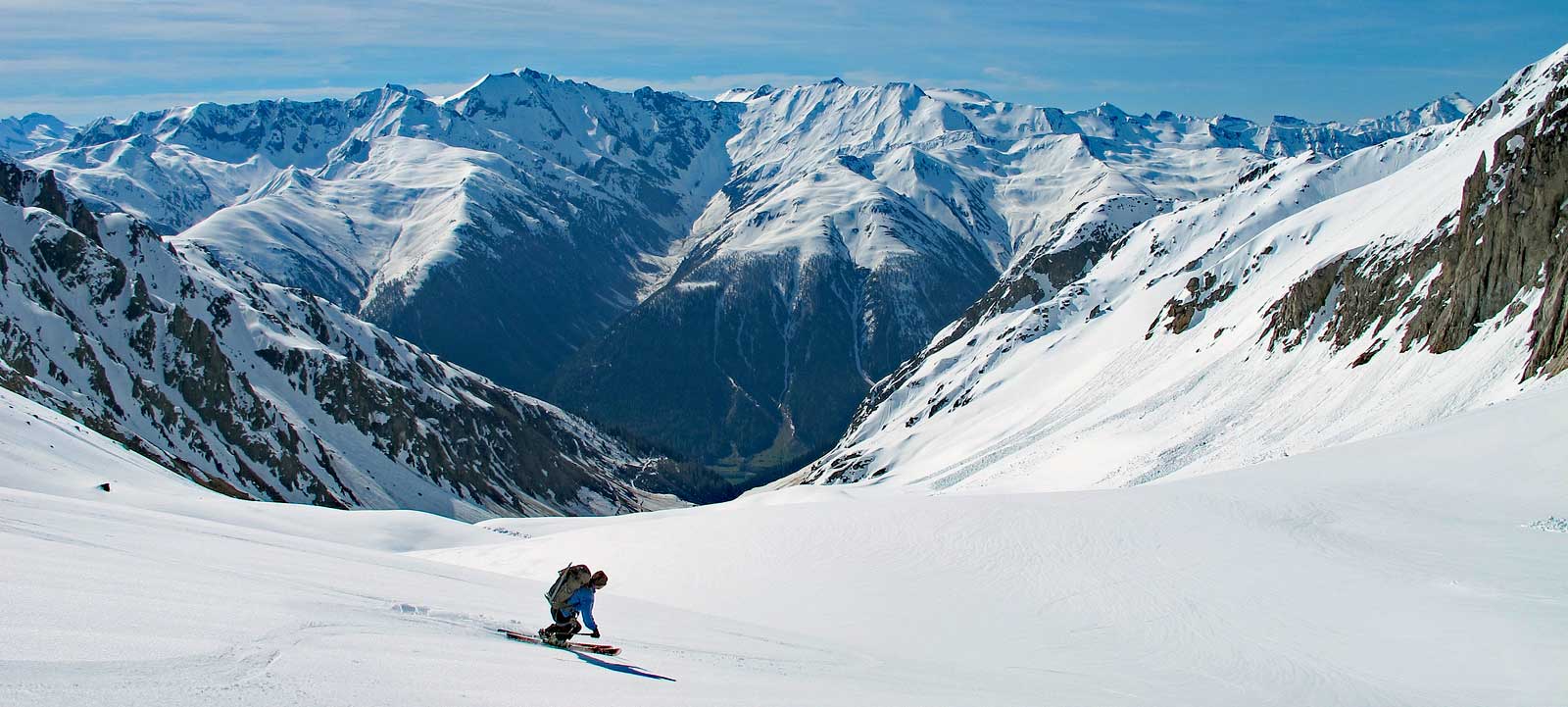This tour requires a high level of fitness and very good skiing abilities. On most of days the total elevation gained is over 1000 meters (3300 feet). Being in good shape will ensure you have enough energy to manage (and have great fun as well!) on the long descents which follow. The reason that skiing skills must be at an advanced to expert level has more to do with the conservation and expenditure of energy over a long day than the absolute technical difficulty of the skiing. There are several steep sections, but for the most part the slopes are not overly steep. The challenge comes in managing poor snow conditions (heavy wet snow, crud or breakable crust) and not losing too much energy or risking injury in the process. Great skiers look like they are hardly working, and this is in fact the case. If your skiing is not up to par you will spend far, far more energy than a better skier. By way of comparison, the Tour du Soleil has generally steeper skiing, both up and down, than the Silvretta or Albula tours. It is technically comparable to the Ortler, Berner Oberland or Chamonix to Zermatt Haute Roued trips. Ski skills required;