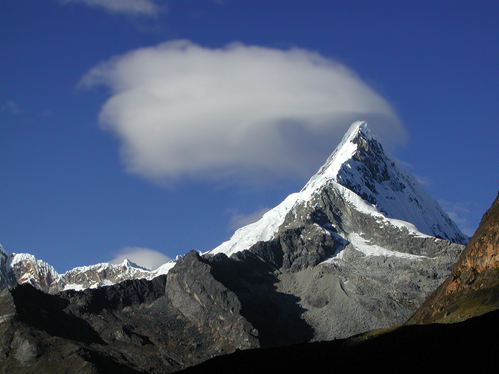 | The view of Artesonraju from about 5000 meters on Alpamayo. | |