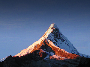Artesonraju is one of the major peaks of the Cordillera Blanca. It's 6025 meter summit bears an uncanny resemblance to the "Paramount Pictures" mountain - the ideal summit.