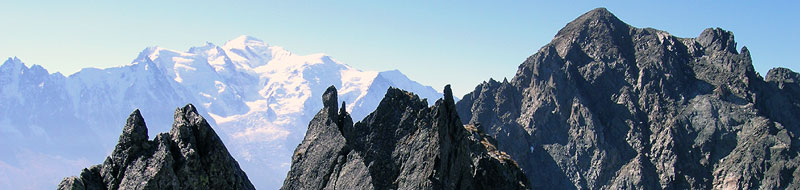 The Chamonix valley is bound between two mountain ranges, the Mont Blanc Massif to the southeast and the Aiguilles Rouges to the northwest. While the Mont Blanc side is considerably harder and justly more well known, many climbers enjoy outings to the Rouges just as much. The Aiguilles Rouges are know for two things, the rock climbing and the views across the valley. The rock in the Rouges is fractured and offers fine climbing with sharp edges and lots of holds. Not all of it is good, but generally the ridges are excellent. Here climbers usually head up for a day's fun, retuning at night to the comforts of Chamonix. And with the use of the lift system many alpine rock routes become fun day adventures. The traverse of the Aiguilles Crochues is one of the best routes in the Rouges. It follows a sharp ridge, is airy and offers amazing views across to the big peaks to the south. The climbing is interesting but not overly difficult. It is a great route for learning to move efficiently on exposed but easy alpine rock terrain, and we often climb it just for that purpose. To start we take the Flégère cable car, then the Index ski lift up its terminus at almost 2400 meters. A short walk brings us to the access gully at the foot of the Crochues. Once up this gully the technical climbing begins. A short chimney, the technical crux of the route, leads to easier climbing right on the crest. We follow the crest all the way tot he summit, climbing over most towers, but avoiding one or two. The descent is easy, down easy rock and snow to Lac Blanc, where we often stop at the little restaurant there for a tart and perhaps a coffee or beer. then back on the hiking trail for 40 minutes or so to walk back to the top of the lift which we ride into town. |