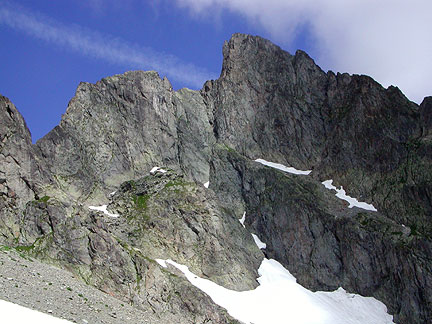 Difficulty The Crochues offers a moderate day of easy rock climbing and scrambling. The route takes only a couple/three hours, but with the approach and descent (don't forget the the stop for a tart!) we spend about 6 to 7 hours out. The greatest difficulties are on rock with a few steep moves, but nothing overly difficult. The large amount of very exposed but easier terrain means, however, that climbers need to be able to scramble well and not be bothered by the big drops on either side. Prerequisites This is a good route for beginners, and also for training for longer climbs. And also a fine route simply if you want to enjoy superb views and a relaxing day up high. |