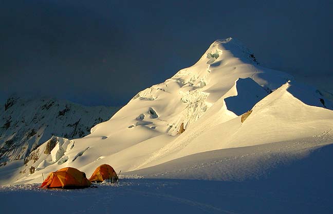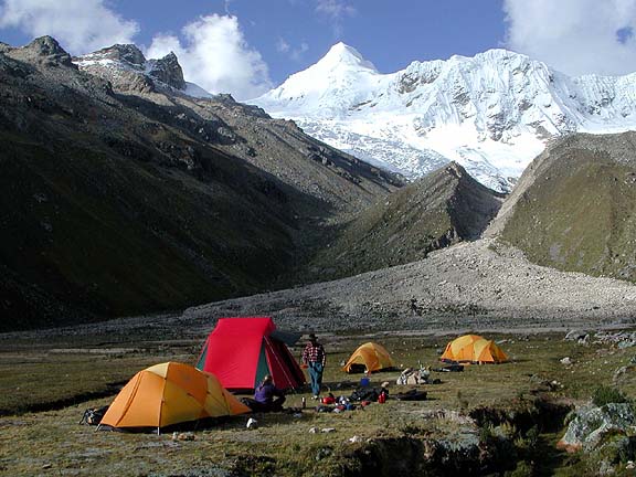 | Ishinca Base Camp with Tocllaraju behind. | |