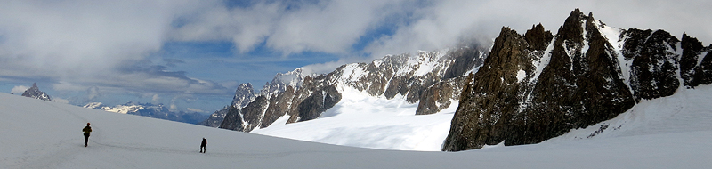 Difficulty This is a moderately day out. Normally an hour or so is required for the approach with the climb itself taking between 2 or 3 hours. The main difficulties are on rock, with some steeper sections near the summit. But the climbing is not overly taxing, making this a good choice as a warm up or an introduction to alpine rock routes. Prerequisites Climbers should be fit and have a head for heights. Previous experience in crampons is helpful, but glacier travel experience is not necessary. A good level of fitness is required. Combinations The Torino hut is quite close by, so other climbs based from here are logical combinations. The Aiguille d'Entreves, the Tour Ronde and the Pyramid du Tacul are some examples. |