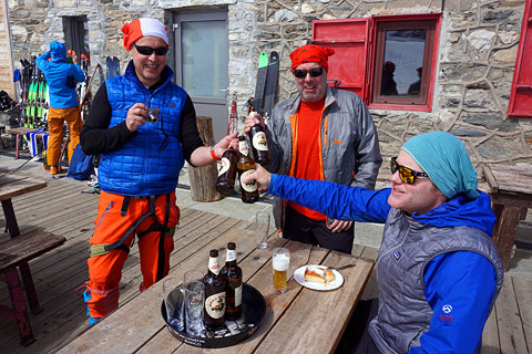 | Russ, Marc and Kade, Rifugio Benevolo, Gran Paradiso tour, April 12, 2016 |