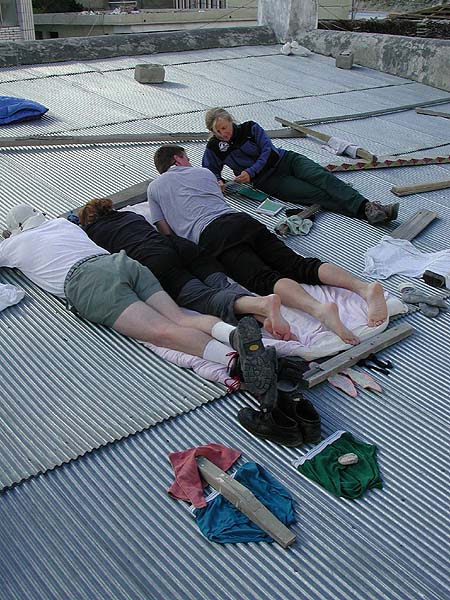 Rick and Kathy lounging at "the beach", the roof or our Nyalam hotel