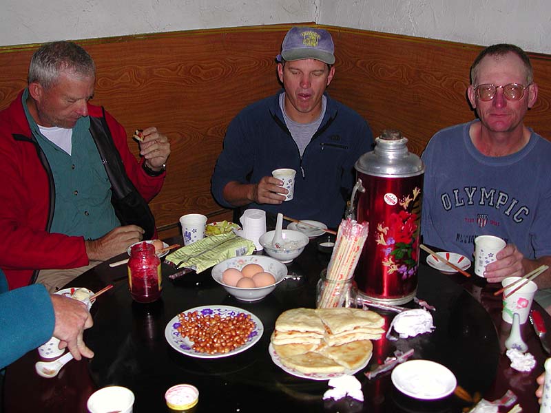 Sparky enjoy a hearty Tingri breakfast
