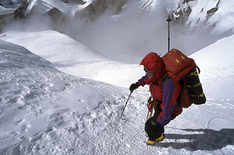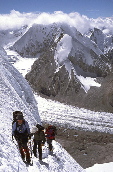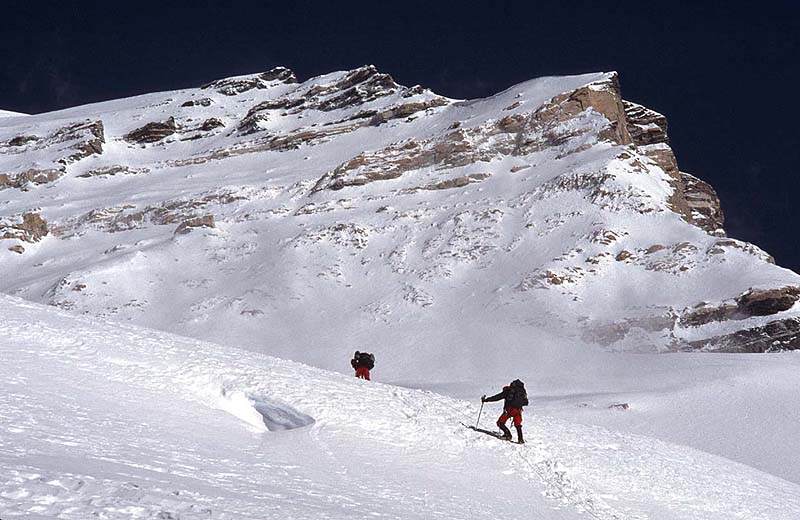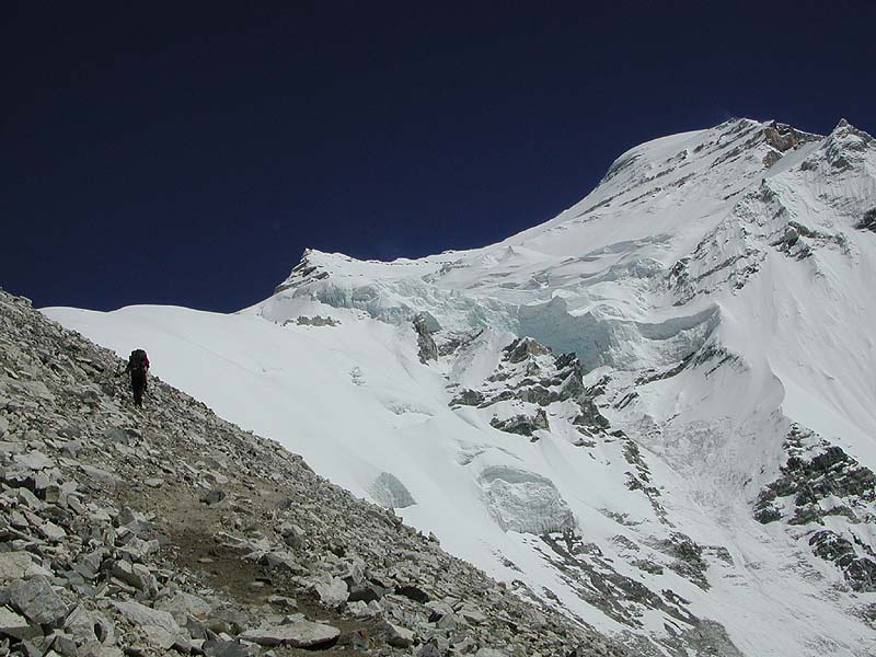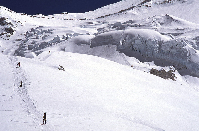 along the edge of the glacier, heading up to Camp I