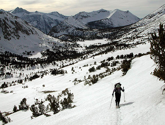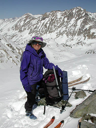At Kearsarge Pass, ripping the skins for the last time (that day, anyway). |