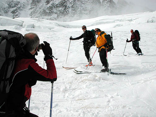 Sam takes a photo of Dave, Jim and Kathy on our way down to the Argentière Glacier. |
