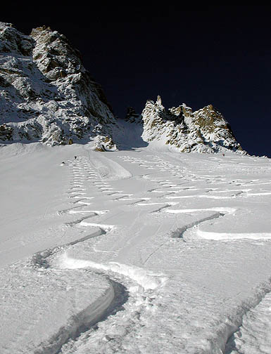 Another great trip! We all had a lot of fun the entire way, but I'll bet all of us will remember the incredible run down the Val d'Arpette for a long time. The snowy weather the first few days brought us incredible powder and wonderful skiing. |