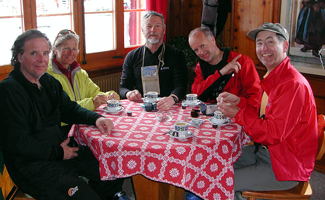 Later that fine morning, we were enjoying coffee and tarte aux framboises in Champex. |