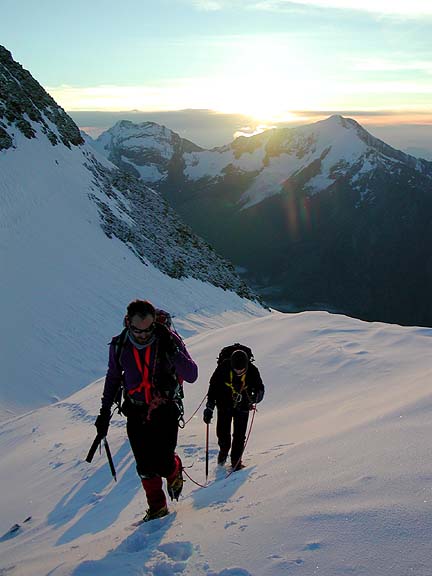After the Nadelhorn, we made a quick dash up the very nearby Ulrichshorn. From here we got a good view of the Lenzspitze as well as the route u the Nadelhorn. |