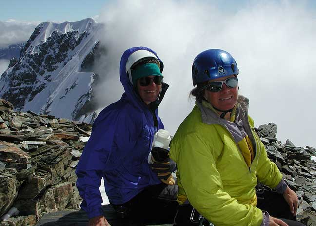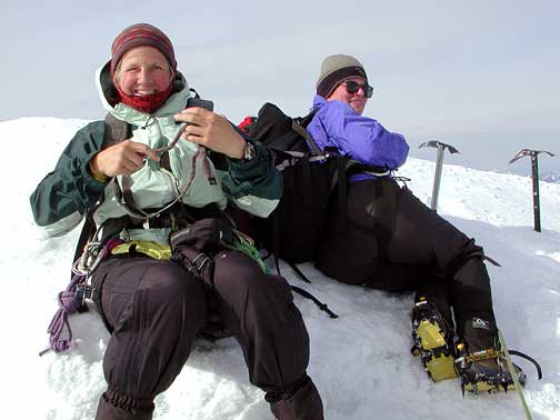 Susan and Kathy on the rocks of the NW Ridge. |