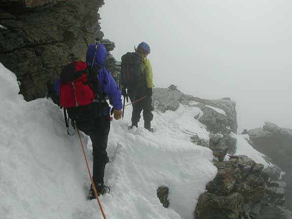 Foggy climbing on the descent. |