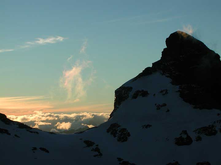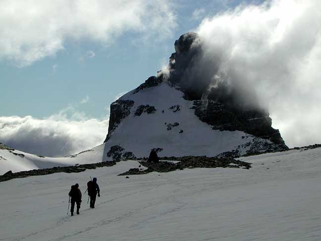 Returning back to the hut. The sharp summit of Pluto behind. |