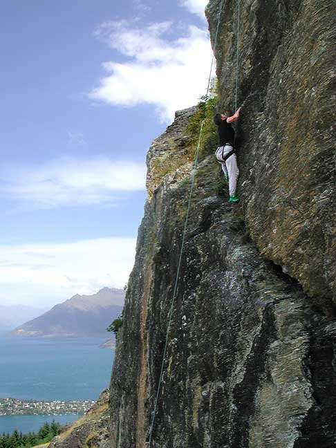 With one day left, we decided to do a bit of sport climbing on the cliff just above Queenstown. |