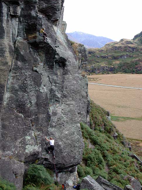 And on our last day of cragging in Wanaka, Kathy and Laurie enjoyed the varied climbing on "Turn On, Tune In, Drop Out", a fun 3 pitch route on the Little Big Wall. |