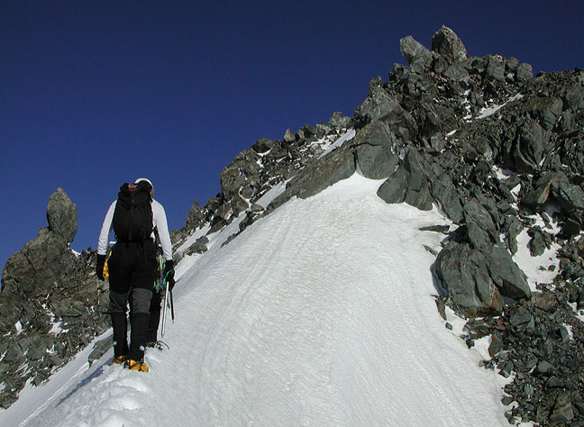 The last steps up to the summit of Aurora. |