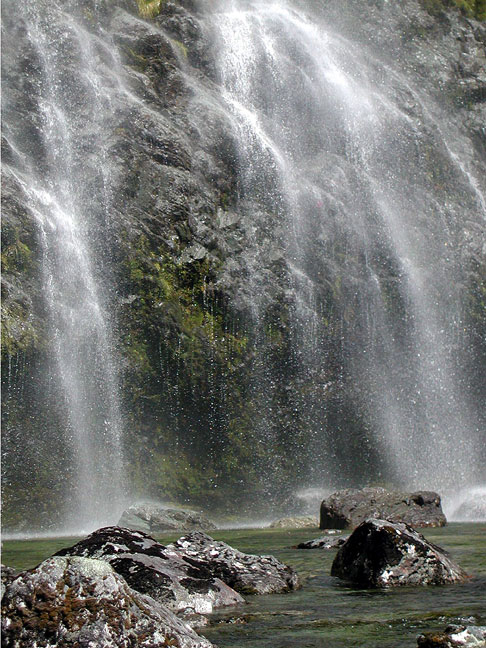 Not long after our climb of Talbot a monster storm overran the South Island, leaving over a meter of new snow up high and mountain routes clearly out of condition for anything except distant viewing. With all climbing plans on hold we decided to do one of New Zealands famous "Great Walks". The Milford is perhaps the best known, but requires reservations for the hutsreservations that must be made months in advance. So the next logical choice was the Routeburn, one of the highest tracks, and also one that can be done quickly. Guided groups often take 3 to 4 days for the track, which starts near Glenorchy (not far from Queenstown) and ends rather near the Homer Tunnel on the way to Milford Sound. We did not want to spend that long on the hike, so we simply decided to do it quicker. We thought a day was adequate. Since we lacked any hut reservations. A one-day walk sloved this issue, also. One of the problems of the Routeburn is that you end up far from your car. One can either spend a long day (or two) on buses getting back to the start point, or hike back on either the Caples or Greenstone Tracks. We thought "well, if we can do the Routeburn in a day, we can do the Caples also in a day." One day out and another day back and we have it covered. The upshot was two very tired hikers. Each of these hikes is about 35 km. One in one day is not too bad, but two in two days is rather hard on the feet. But they certainly were beautiful, as I hope the photos below show. |