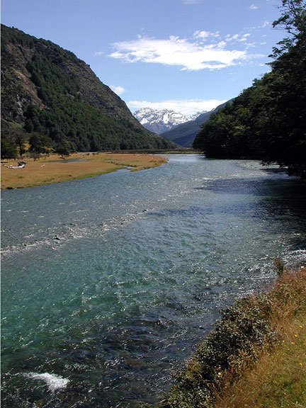 The Caples River. This high clouds of the next storm begin to appear. |