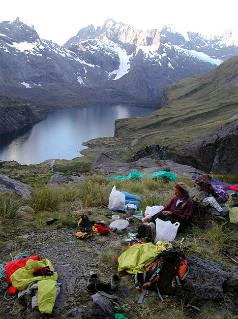 | The "porch" at Phil's bivy. In the evening the Keas would come around looking for opportunities to steal whatever they could fly off with. |