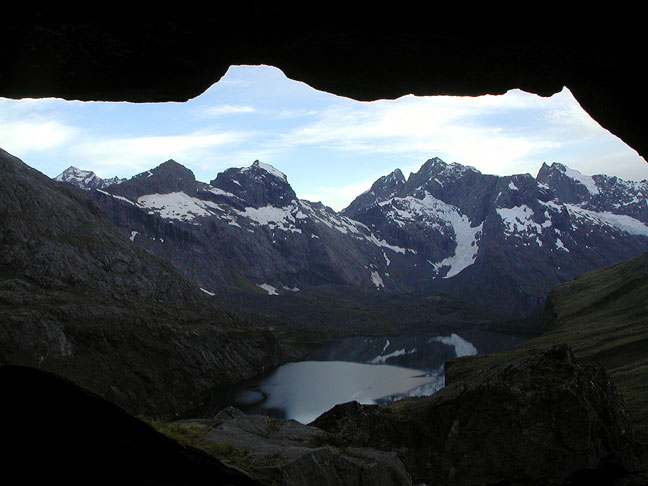 The entrance to Phil's Bivy with Lake Adelaide. |