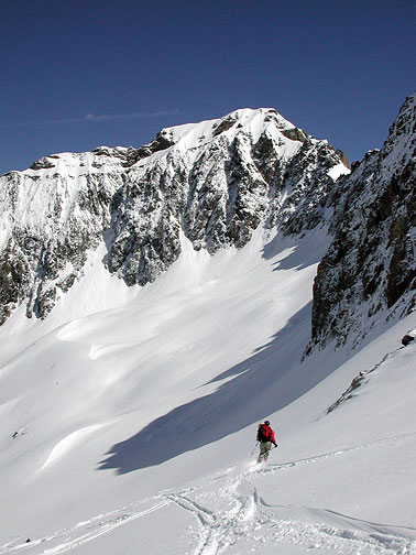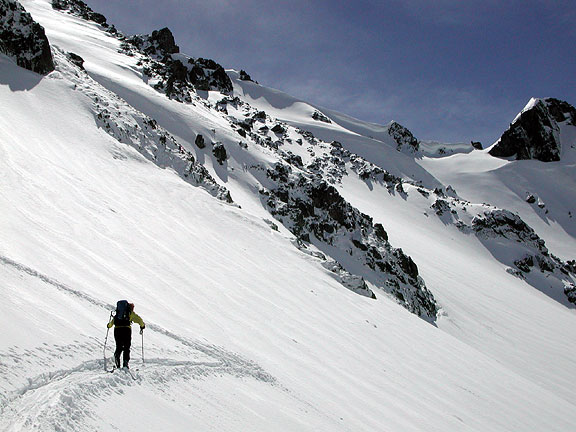 And another short skin up to the Col de Berard. We saw many ibex high on the cliffs above as we rounded the corner between the cols. |