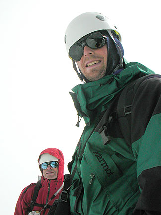 Derek and Emery at the start of the traverse just under the cornice, not far from the summit. |