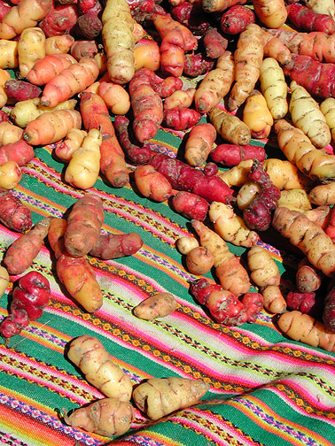 Oca, a potato-like tuber, before going into the Pachamanca. |