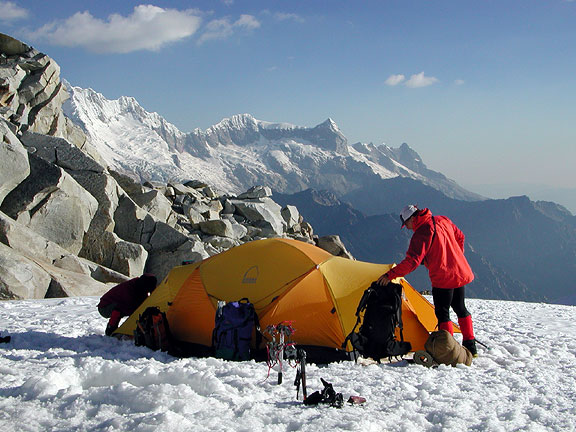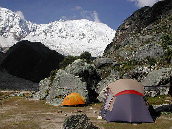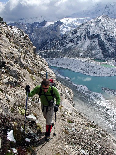 After Ishinca and Urus Oeste, we set our sights on Tocllaraju. Here, bill hikes up to high camp. |