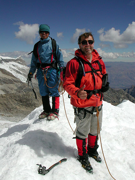 | Bill Rossbach joined Mark for a couple weeks of climbing based in Quebrada Ishinca. Though we had our share of not so great weather (it snowed briefly in Base Camp) The good weather was there when we needed it. |