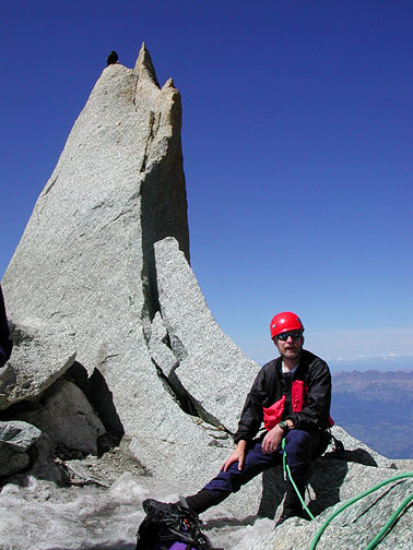 Taking a brief rest on the Cosmiques Arête of the Aiguille du Midi. |
