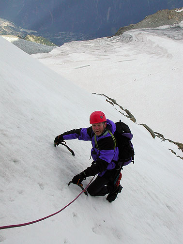 After the Cosmiques, they did a traverse of the Points Lachenal. While this slope is occasionally only snow, it looks pretty icy here. |