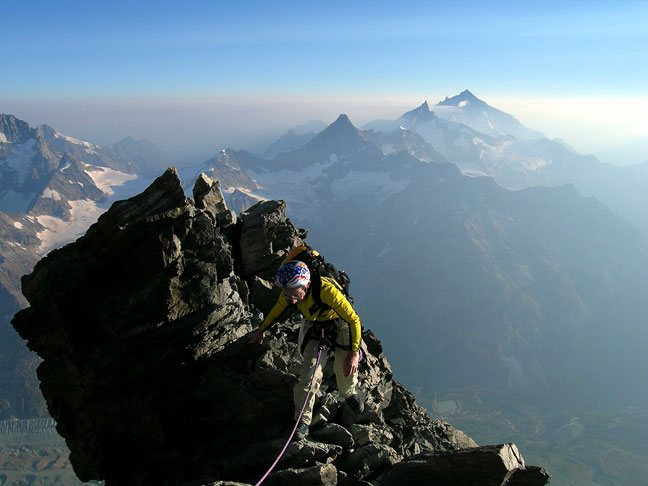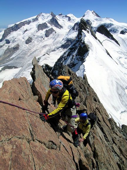 Exposed climbing on the Breithorn Half Traverse. |