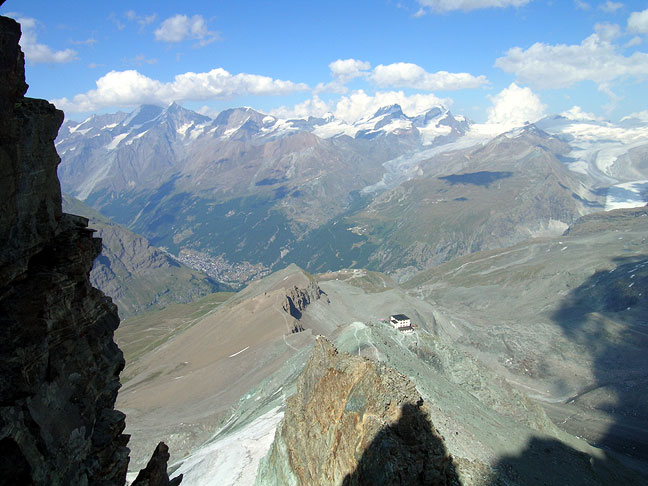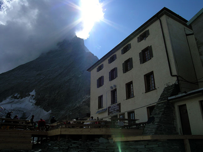 The Matterhorn and the Hörnli hut. Those of you who are familiar with the Matterhorn will notice how dry it is. Incredibly enough, we did not even need crampons! |