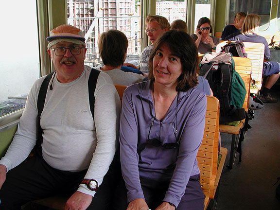 Carl and Kathy ride the train up to the Jungfraujoch. Every time I ride this route, I marvel at the Swiss precision. Believe it or not, all the screw driver slots in the screws next to Kathy in the wooden seat are aligned straight up and down! Check it out, next time you ride this train. |