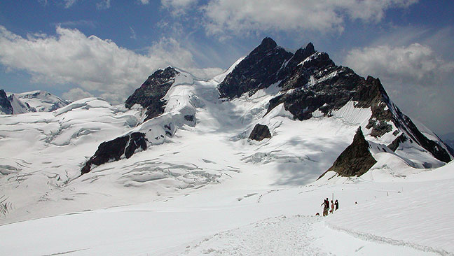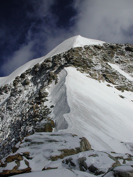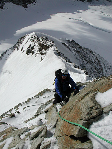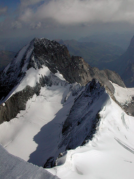 | Looking back down the SE Ridge, towards the Finsteraarhorn. |