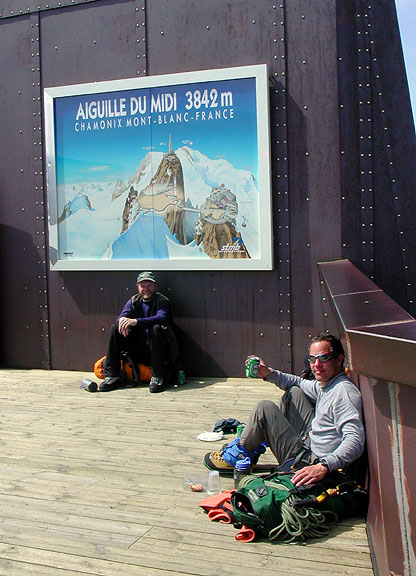 | After the climb, enjoying a Heineken at 3842 meters. |