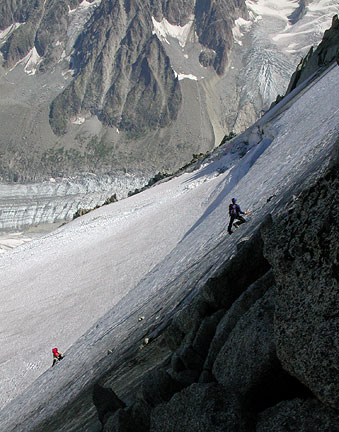 | Another party on the ice face of the Petite Aiguille Verte. |