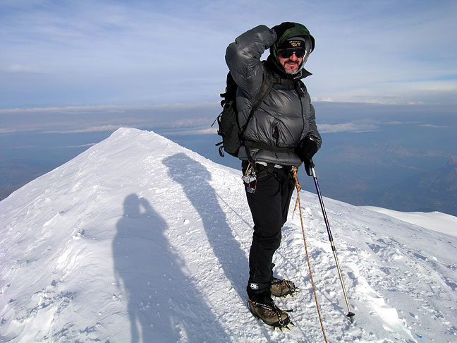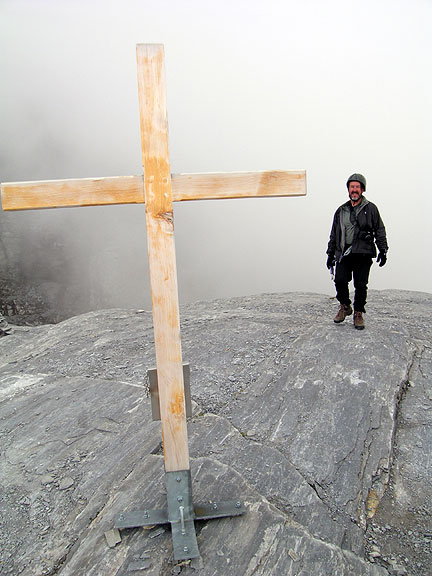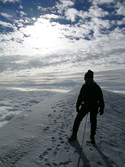 Tony on the summit of the Mönch, with the Eiger in the background. |