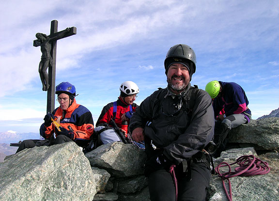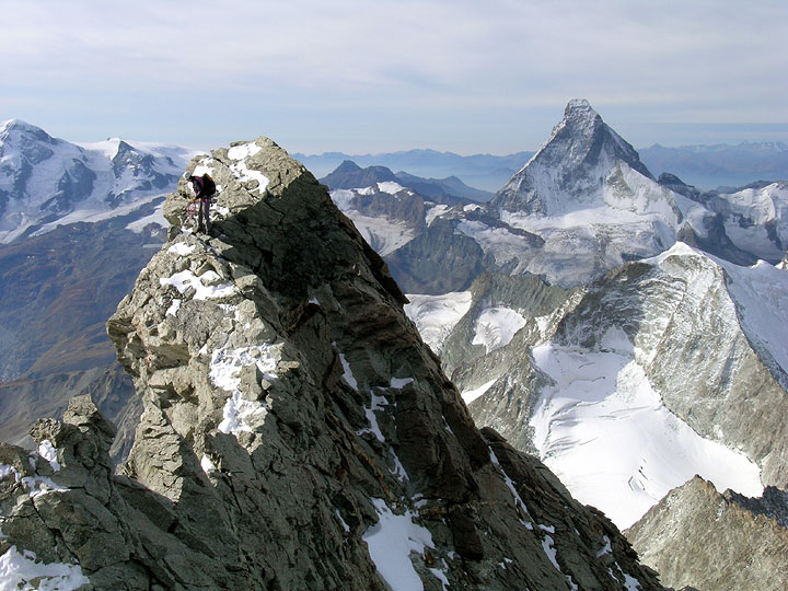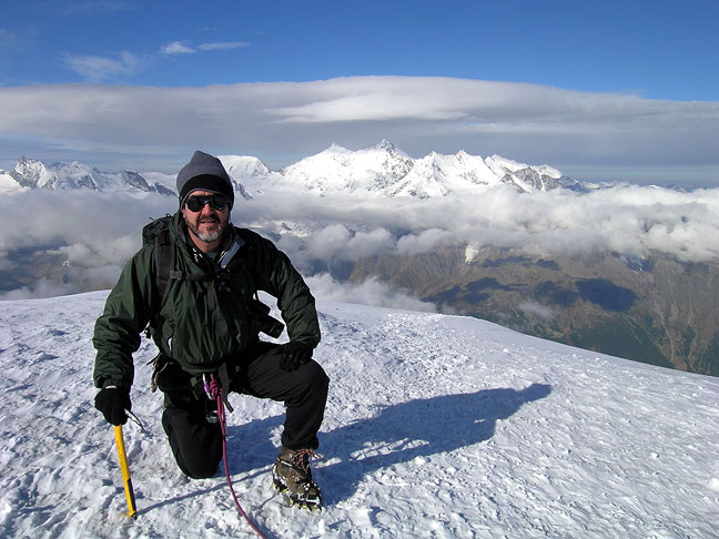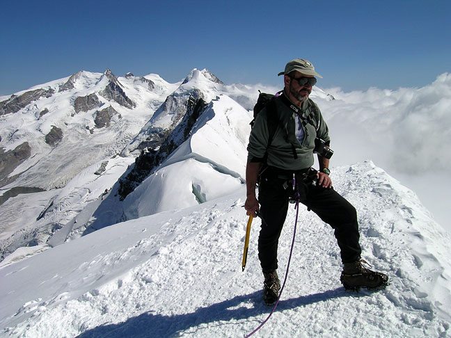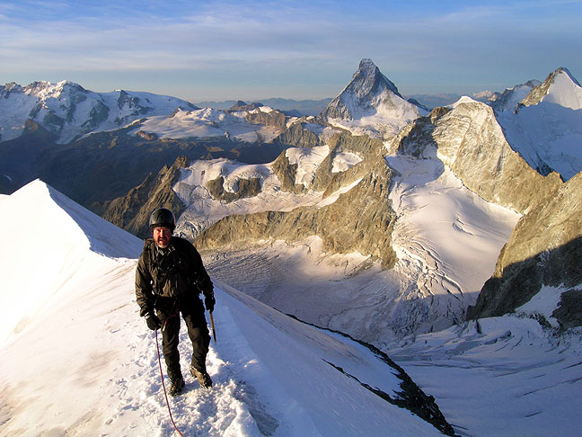 Tony on the Rothorn, with the Matterhorn in the background. |