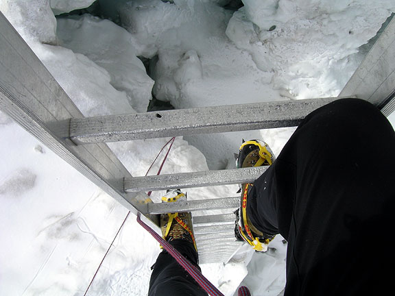 | The descent down the normal Northside route included ladders spanning some rather big holes. Normally this route is pretty straightforward, but this year, the dry and hot season opened up holes where none had been before. |