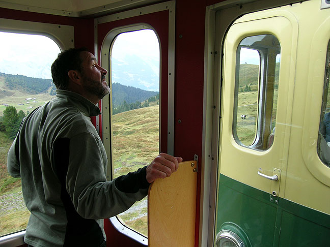 Tony looks up at the Eiger's North Face from the comfort of the train to Grindelwald. |