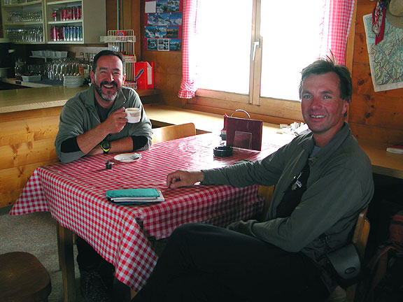 Tony and Mark enjoying coffee and apple strudel in the Hohsaas restaurant. |