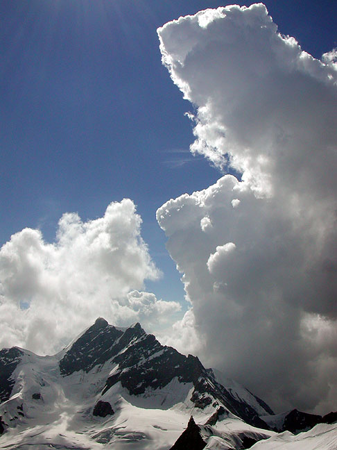 | Storm clouds brewing over the Jungfrau, seen from the Mönch. |