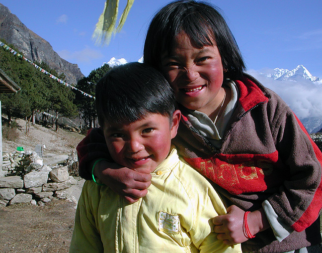 | Mingma's two little girls (the boy was off practicing his horse-intimidation skills with a scrap of string. |