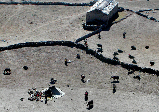 | The cottages at Chiutungbo were empty at the moment, but plenty of yaks were grazing nearby. |