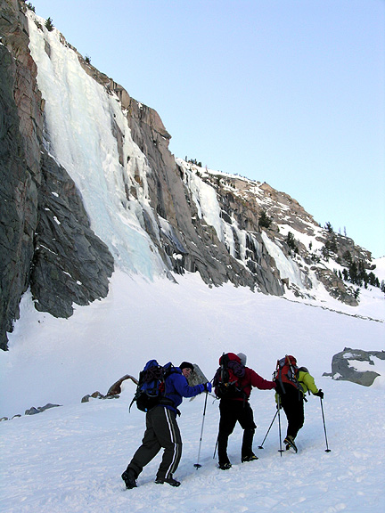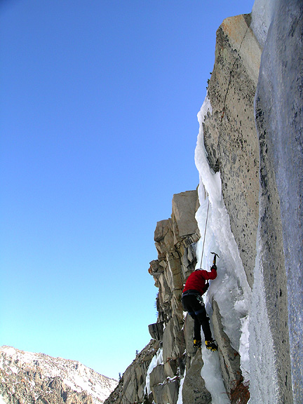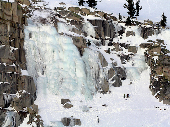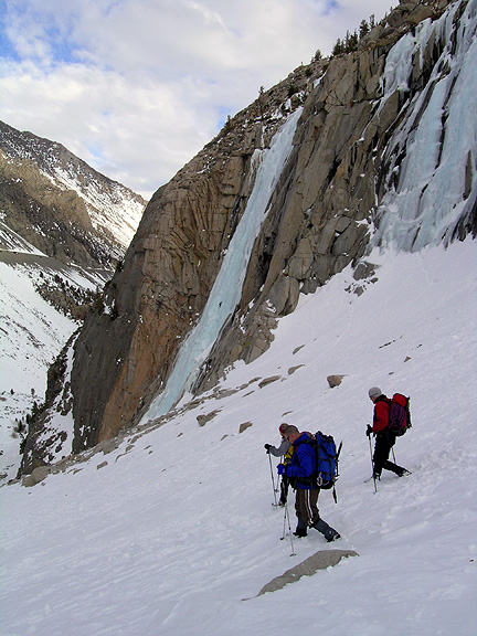 | Here is a view of the right hand area of Lee Vining, also known as Chouinard Falls. This is a great practice area and where Jon Steve and Kathy spent most of their time. |