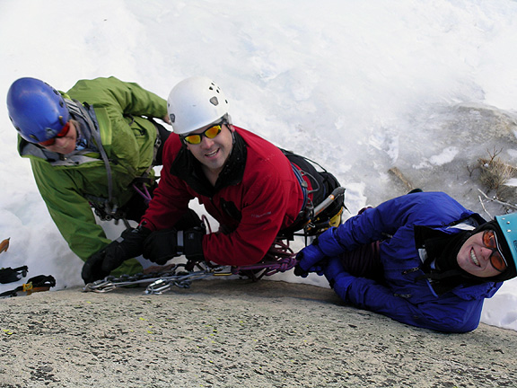 | Jon Leicht and his friend Steve (I don't think I ever learned his last name!), both from Southern California, joined Kathy for 2 days of ice in Lee Vining. Mark came along as photographer. |